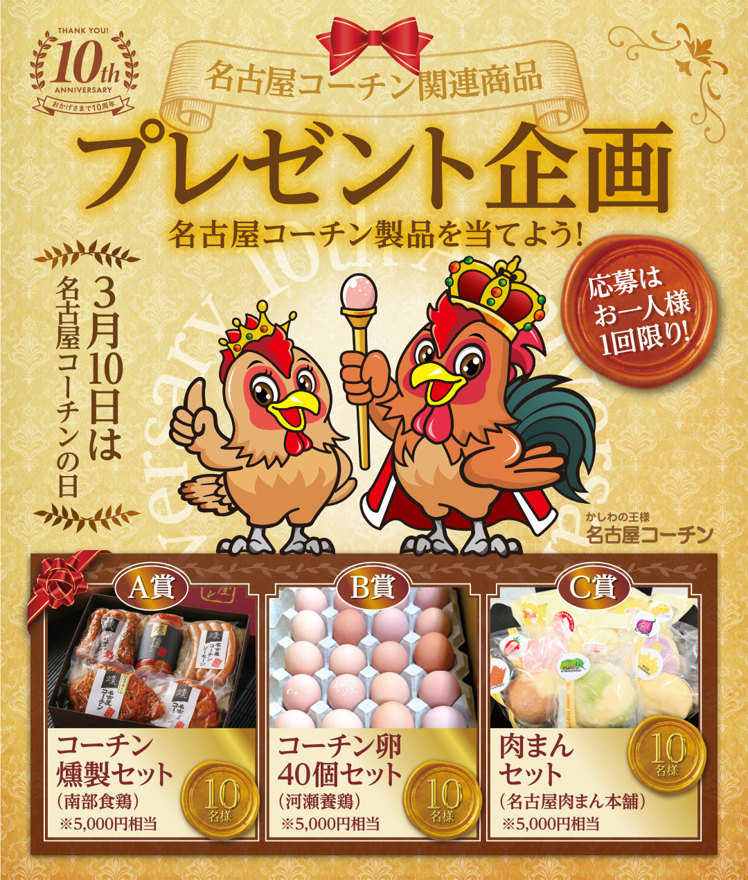 ご応募いただきました方の中から抽選で『名古屋コーチン製品』をプレゼント!